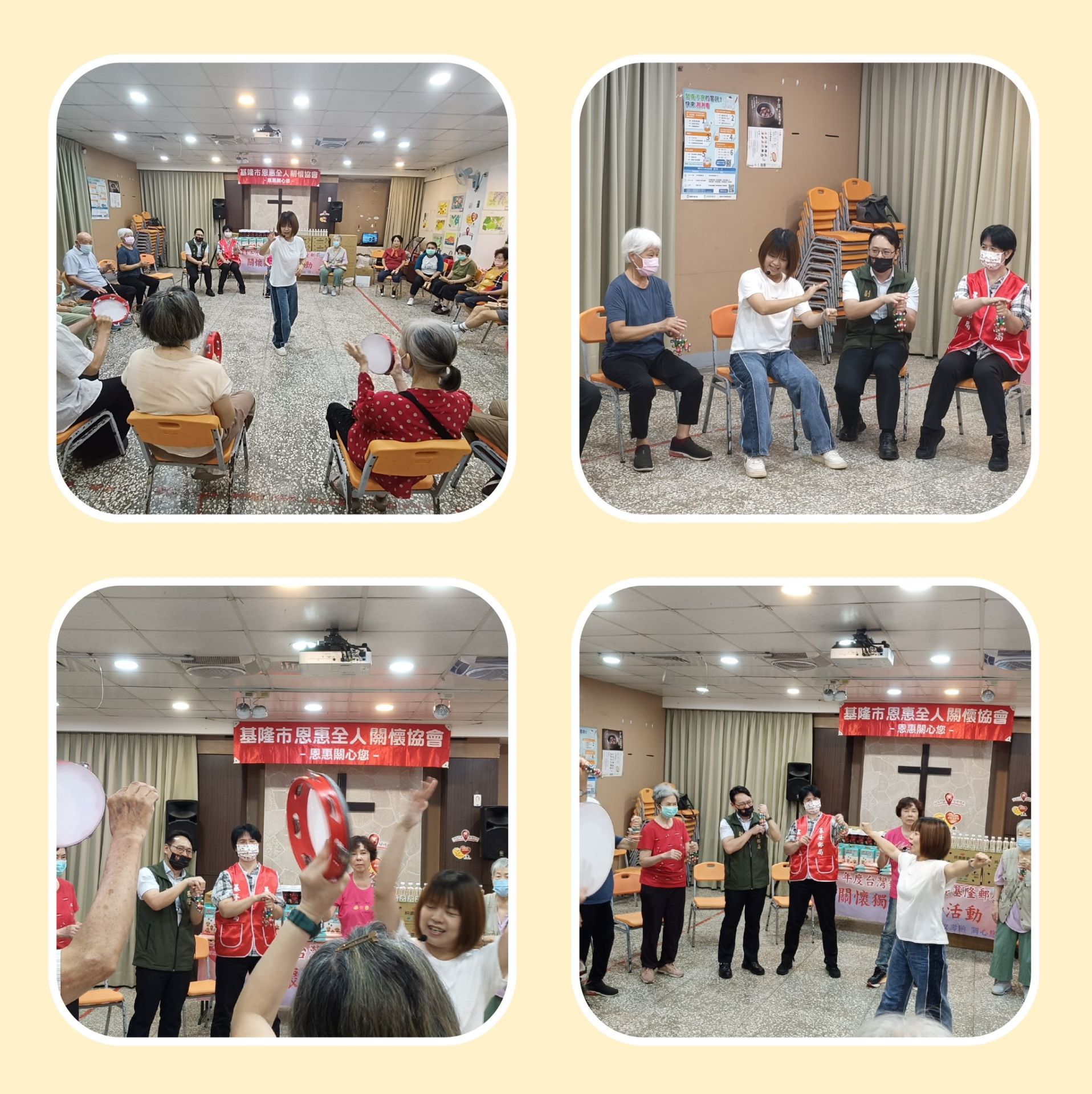 114年10月13日上午10時,台灣郵政協會暨基隆郵局參與基隆恩惠全能關懷協會舉辦「樂齡音樂班」關懷活動,音樂班內容包括鈴鼓、響板、搖鈴及手鐘演奏,透過輕快的節奏與簡易的音樂互動,與長者們感受生活的喜悅。